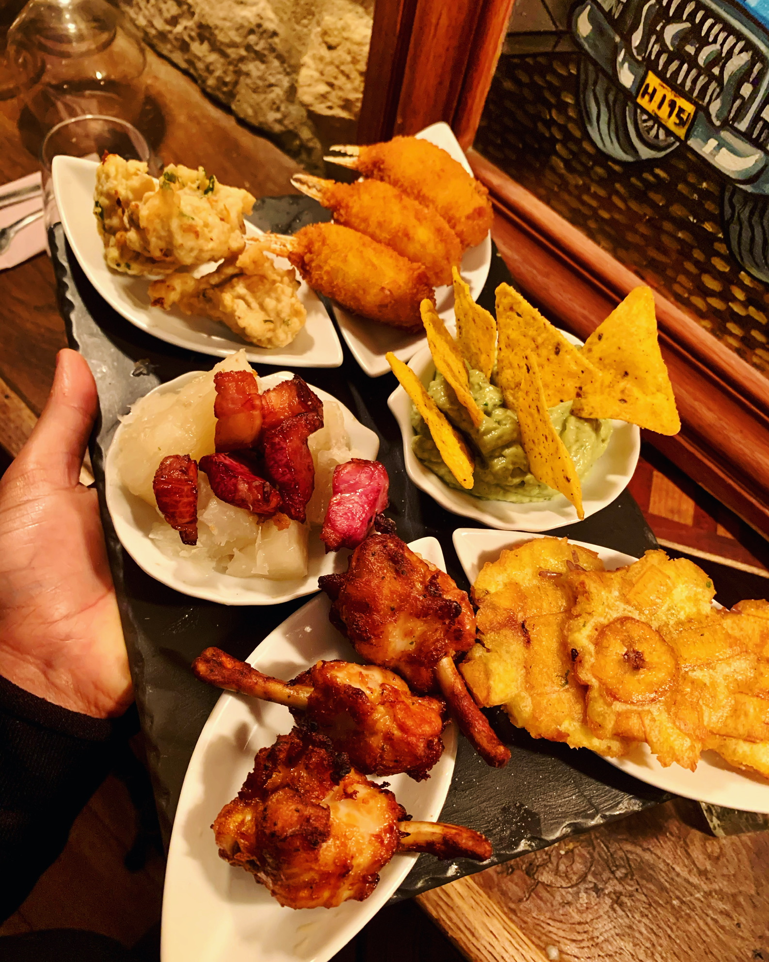 Je suis allée avec un groupe d’amis à l’improviste dans ce restaurant en cherchant des saveurs latines par une nuit d’hiver. L’accueil était très agréable, tant du barman comme de la cuisinière. Nous avons commandé de cocktails (Mojito et caipirihna) qui étaient bons, un assiette grande à partager avec plusieurs fritures, qui était également très bonne. L’assiette que vous voyez dans la photo de viande effilochée était goûteuse. Nous avons passé une bonne soirée MAIS le gros GROS point négatif est le manque d’aération du lieu. Il n’y a pas d’évacuation des airs de cuisine par un autre endroit que ne soit pas la porte d’entrée - donc il y avait de la fumée de la friture dans le restaurant qui est petit au RDC (et je n’ai pas été au sous-sol où il y une autre salle), on venait ouvrir la porte d’entrée pour faire de l’air et enlever la fumée (au point où nous nous sommes demandés si l’alarme incendie n’allait pas se déclencher) > conséquence, on avait froid dans le restaurant. De plus, les toilettes ne fermaient pas et pour terminer le tout, TOUS nos habilles avaient une puanteur d’huile de friture. Tout est passé à la machine. Dommage pour l’endroit car cela a du potentiel mais il faut véritablement réfléchir à une évacuation pour la cuisine en dehors de la porte d’entrée. Quand tout cela sera réglé, nous reviendrons!