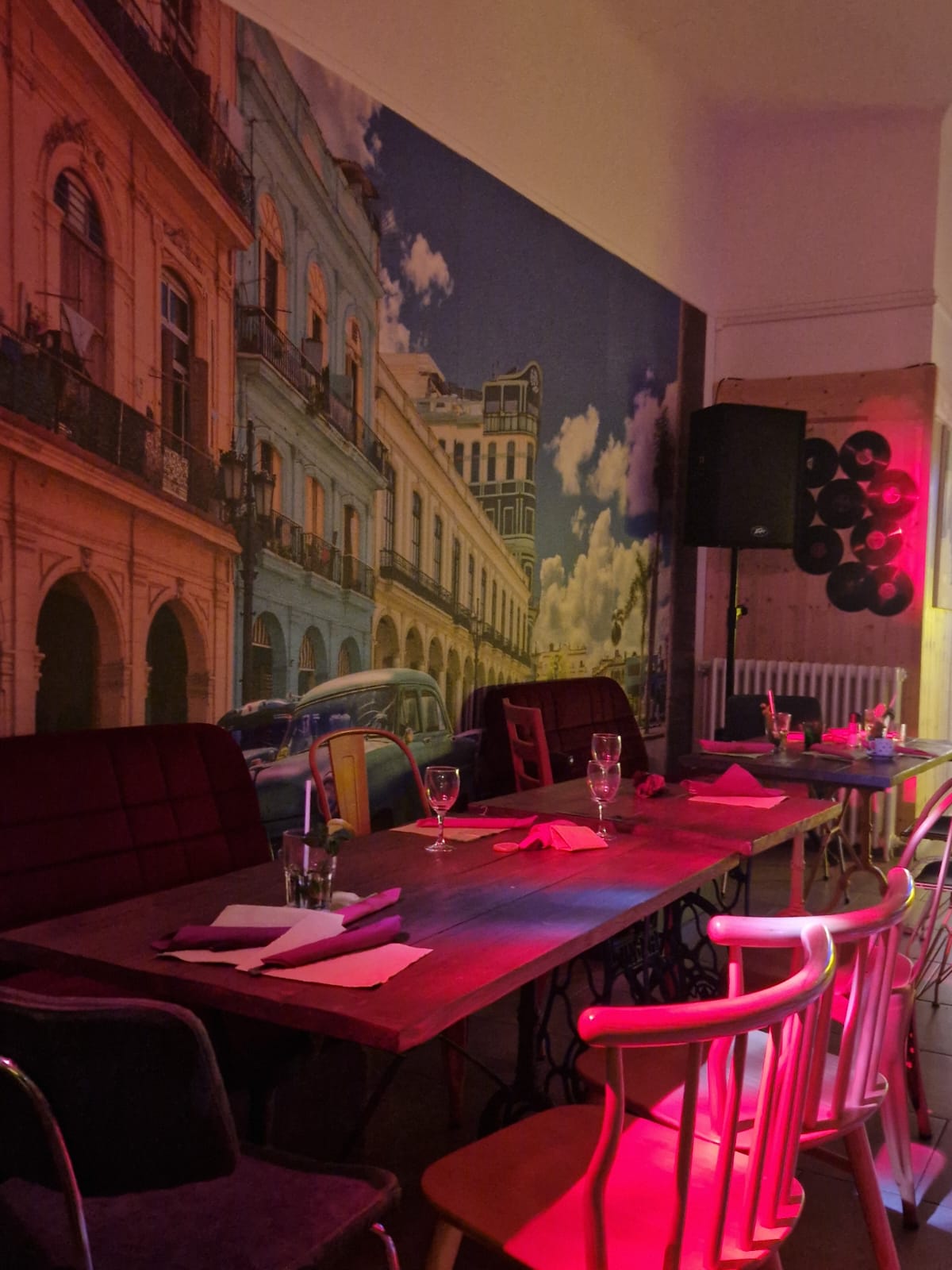 C’est un restaurant qui vous offre un moment de dégustation aux saveurs locales de Cuba ! La carte est tout à fait adaptée aux plats cubains : les croquettas jambon fromage avec leur petite sauce, les bananes plantains, le poulet braisé, l’effiloché de bœuf, les frites de patate douce, etc… tout est très bon !!! La musique latine vous fait bouger le corps sans le contrôler, c’est ouf ! La décoration est tout simplement magnifique. En pleine après-midi, un samedi, nous avons mangé des plats typiques cubains donc merci pour cette hospitalité. Le patron est à vos petits soins, sans vous forcer à la consommation ce qui est rare de nos jours. Il est avenant car il vous prévient quand il n’y a pas les plats indiqués sur la carte. Nous avons passé un très bon moment
